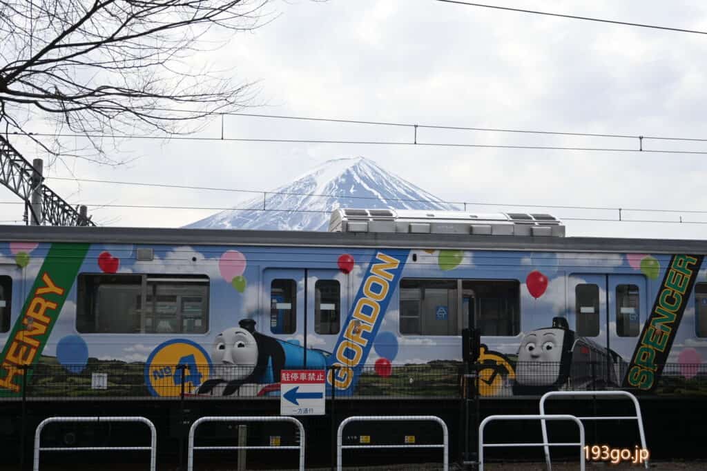 河口湖駅にはトーマスやNARUTOラッピング列車が!ローソン×富士山の撮影スポットも