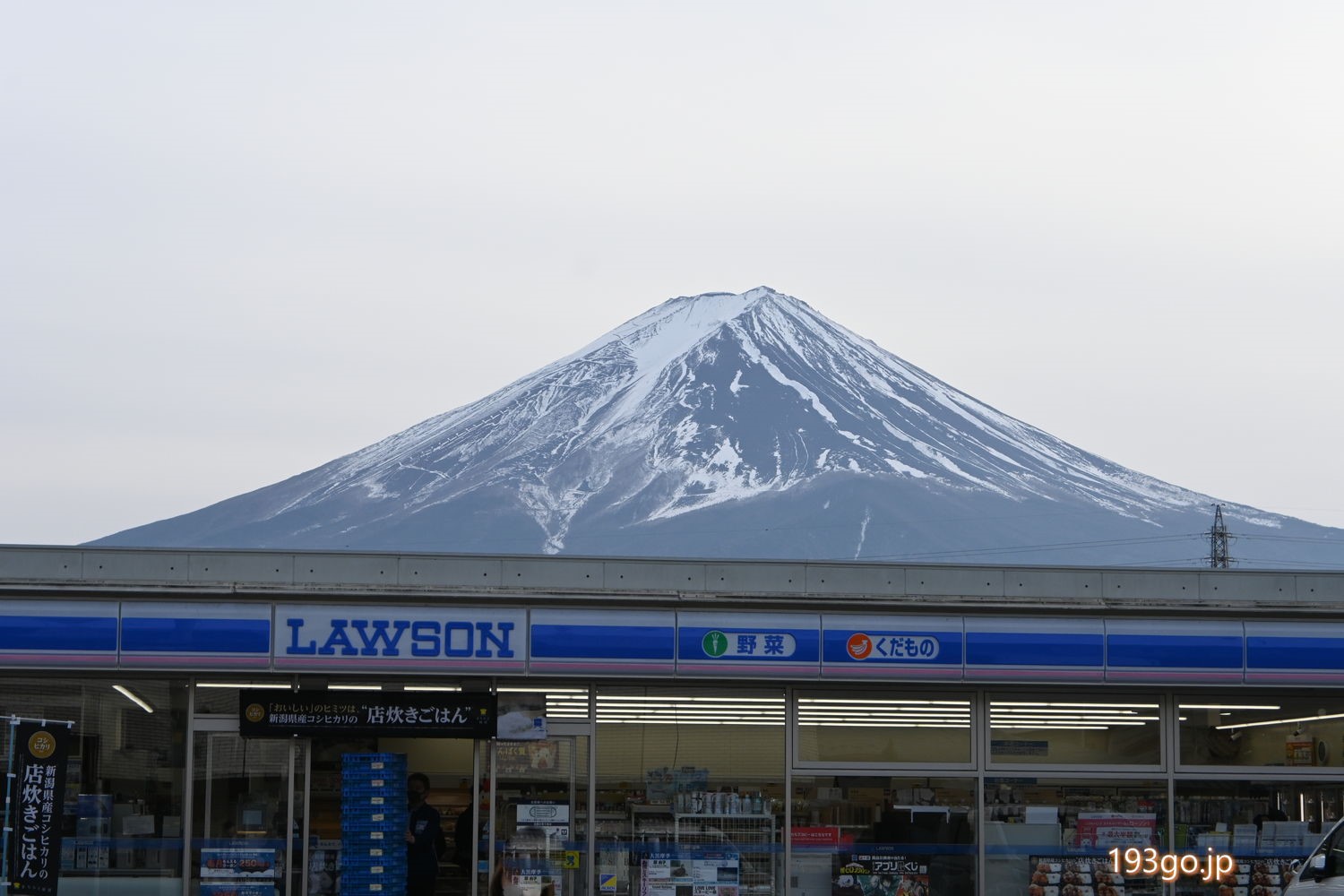 ちなみに、河口湖駅前の道沿いにあるローソンはちょっとした撮影スポットに。