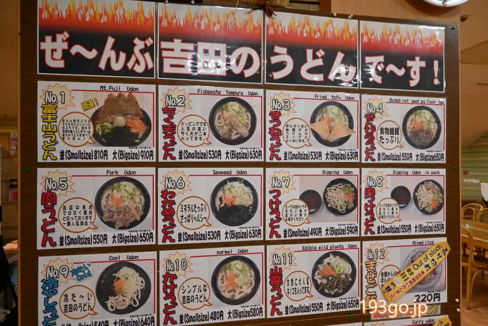 メニューには、富士山うどん、ちくわうどん、きつねうどん、きんぴらうどん、肉うどん…と、12種類ほど。