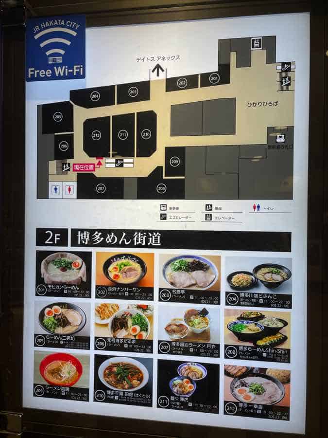 ラーメン店を探すと博多駅近くに人気店が集結する「博多めん街道」を発見。