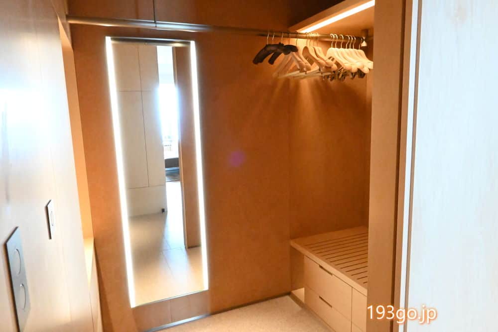 クローゼットには、荷物を置けるスペースと、ハンガーがセット。