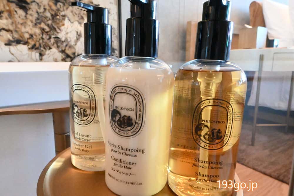 フィロシコスのソープやボディローション、バスアイテム一式。