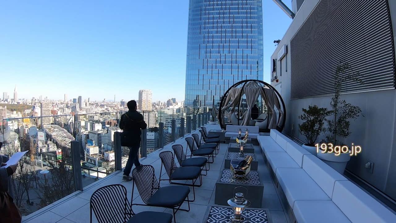 テラスには赤いパラソルがいくつも立てられ空と風、渋谷の街を感じられる絶景。