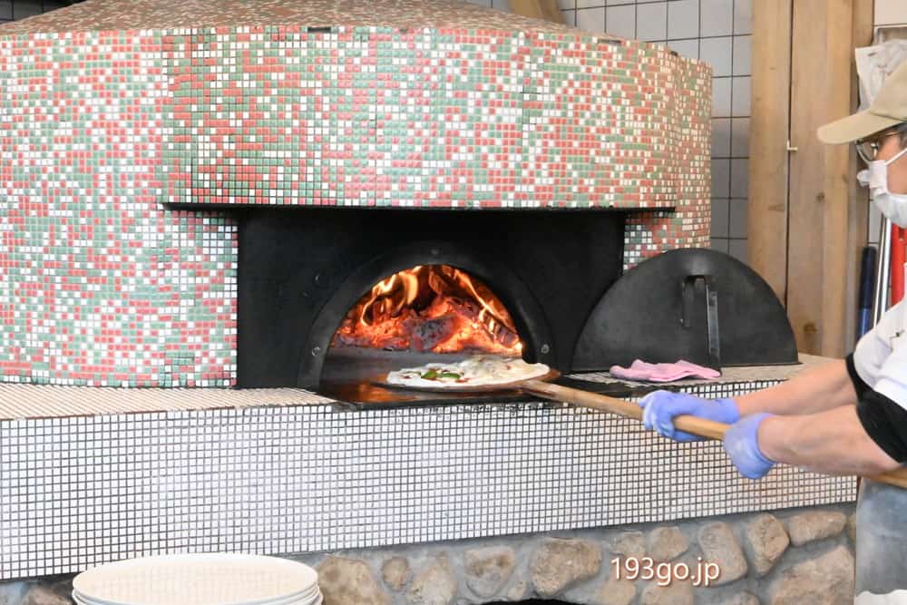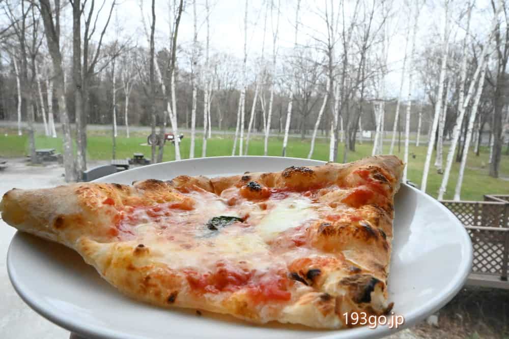 ナポリから取り寄せた本場のまき窯を使用し、食材には地元産の小麦粉、トマトやたまねぎ、チーズ工房オリジナルのモッツアレラチーズをふんだんに使用した富良野産にこだわったピッツア。