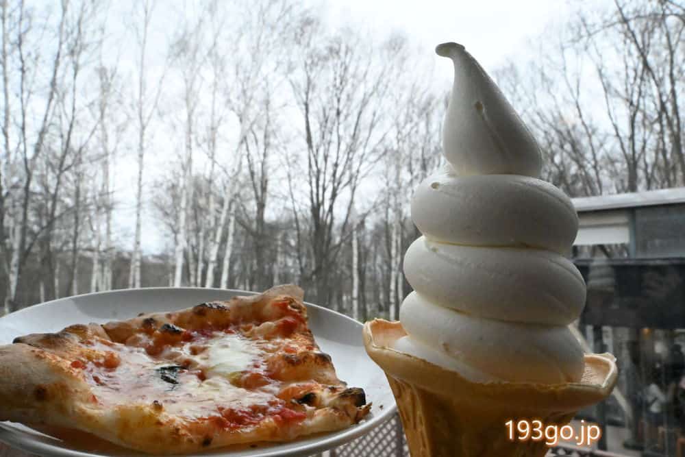 ピザが焼かれる間に、隣のアイスミルク工房でチーズソフトクリームもゲット!こちらも人気だった。