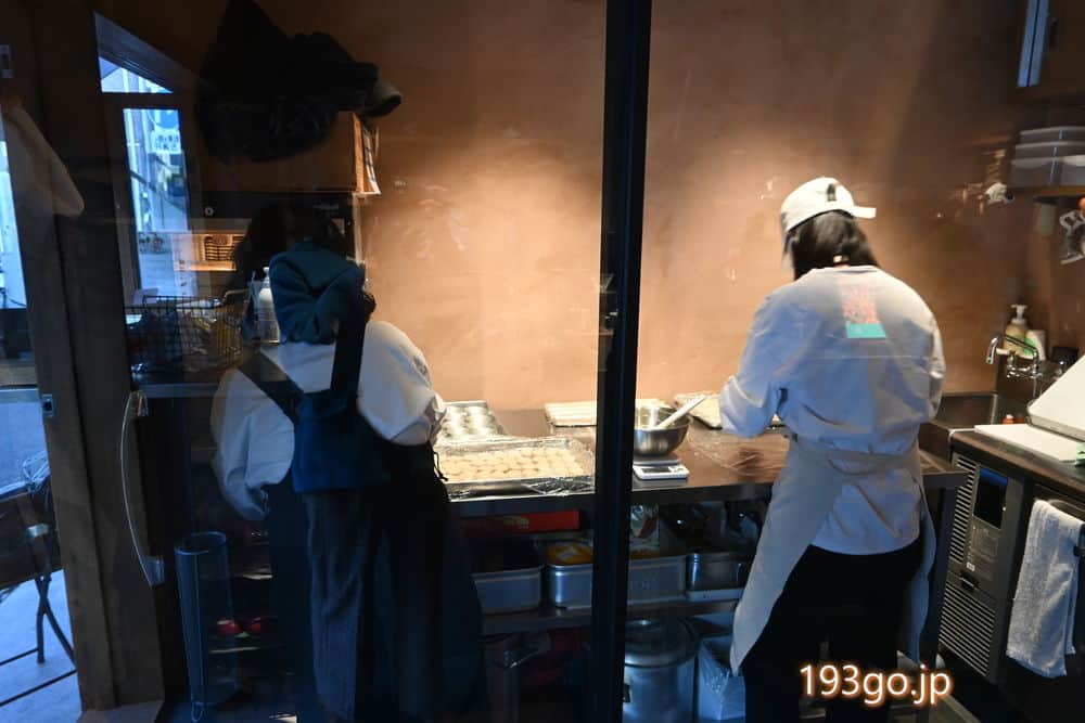 パイを丁寧に仕込むシーンがガラス越しに見られる。
