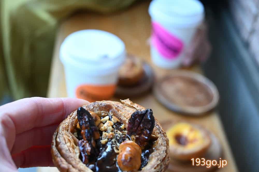 アップルフィリングを混ぜ込んだエッグタルトも。この発想は面白い。アップルパイと、エッグタルトそれぞれは食べたことがあるけど合体版は初めて。