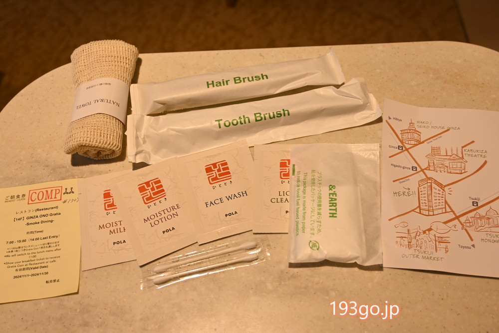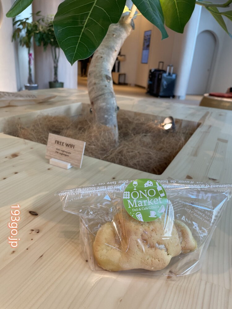 朝食付きプランで宿泊するとコインのおまけ付き。このコインは1階の「ONO Market -Deli&cafe GINZA-」で使えて、パンやドリンクをテイクアウト可能。