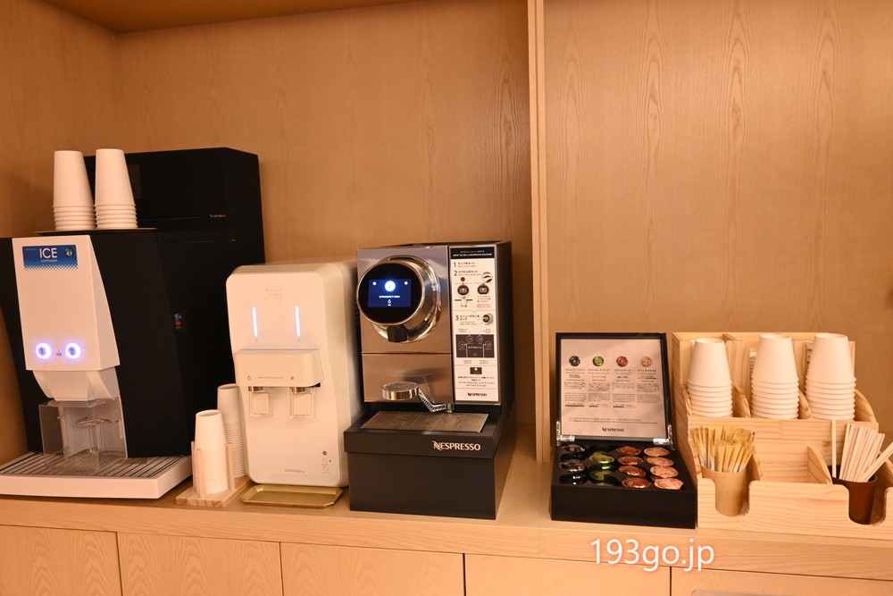 コーヒーマシンが完備されていて、いろいろな種類のコーヒーをセルフで楽しめる。