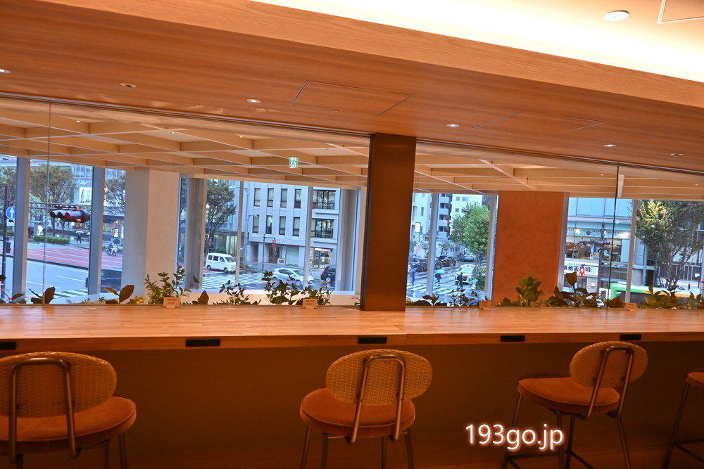 カウンター席に座って街並みを眺めながらのコーヒータイムは、ちょっとした贅沢気分。