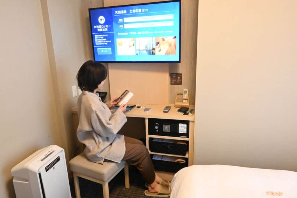 早速お風呂へ。テレビ画面で混雑状況が確認でき、チェックイン後の15:00台は空いてた。