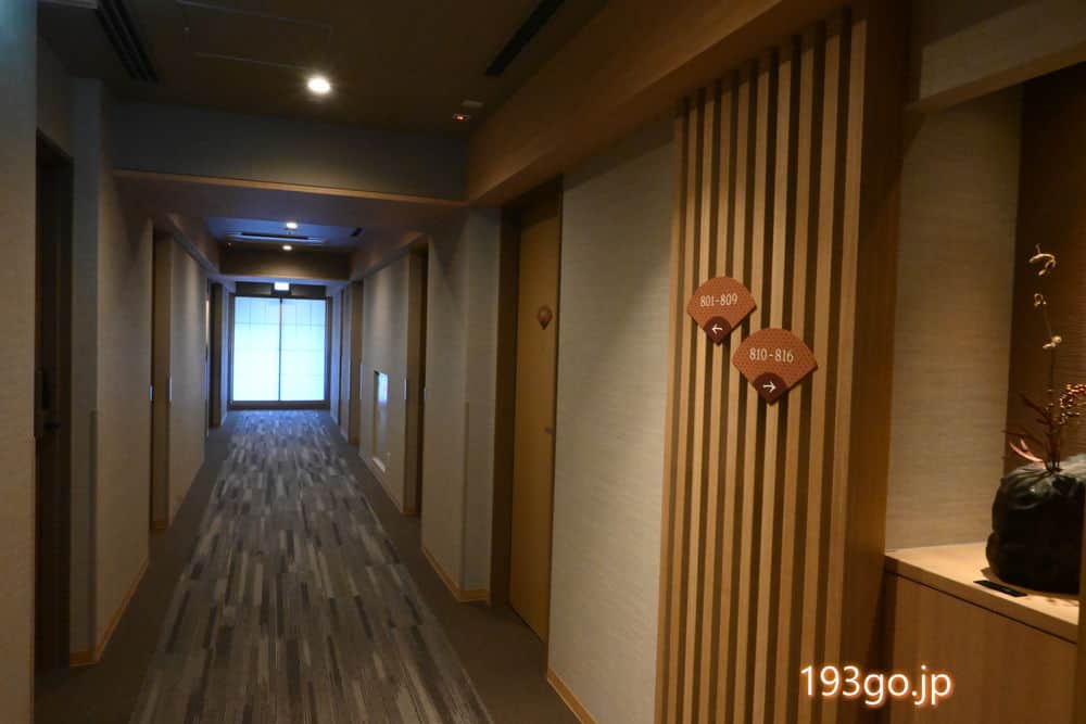 客室は2階~12階に。エレベーターを降りると、木や扇子、障子などを取り入れた和モダンな雰囲気だ。
