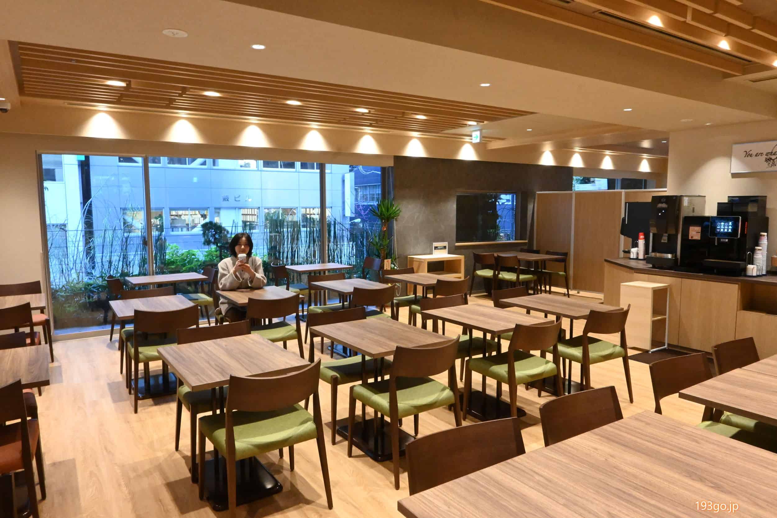 2階レストランは、15:00から23:00までフリースペースに。コーヒーマシーンやドリンクバーがフリーで楽しめた。
