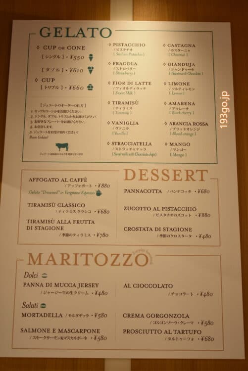 ジェラートやローマ生まれのマリトッツォをはじめ、イタリア各地の伝統的なドルチェや焼き菓子が楽しめる。