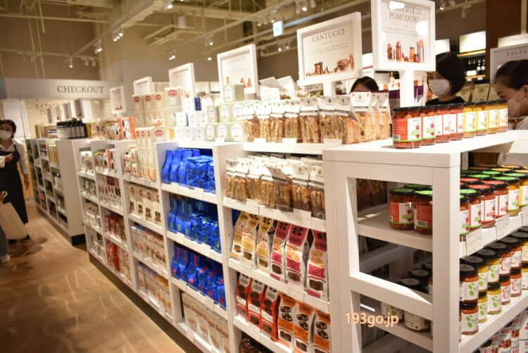 見どころは、5店舗で1番の品数で1500以上ものイタリア食材が揃うマーケット。