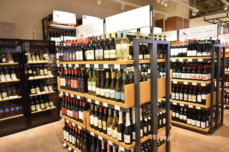 毎月イタリアから直輸入されるフレッシュパスタや、その場でカット、スライスしてくれるチーズ、ハムの量り売り、360種を超えるワインが揃い見ごたえあり。