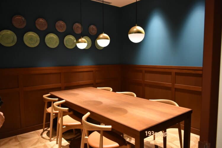 他の3店がカフェやカジュアルに利用できるのに対し、「ラ・グリーリア」は奥の一段上がった場所にあり、特に広々していて、食事やお酒をゆっくり楽しめる。