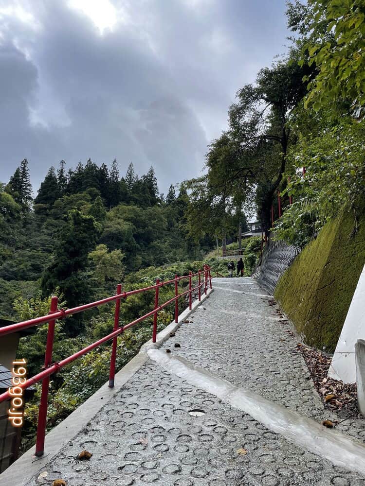 瀧見館までの道のり 坂道と滝と赤い橋