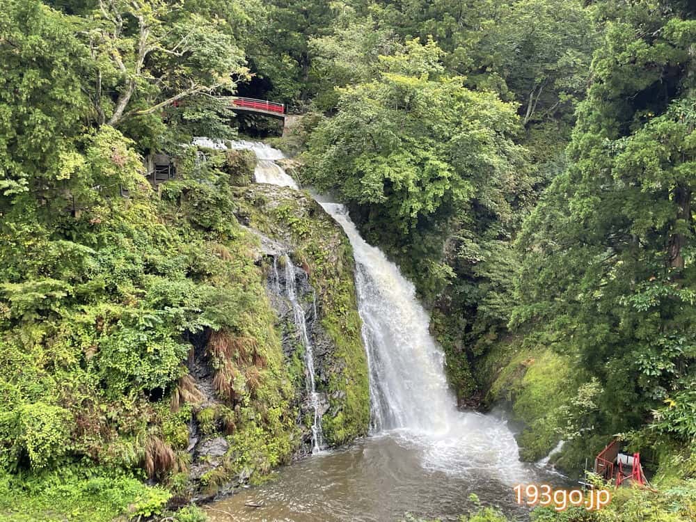 瀧見館と名づいてる通り、近くまで行くと滝が望める。水量が多くて見ごたえあり。