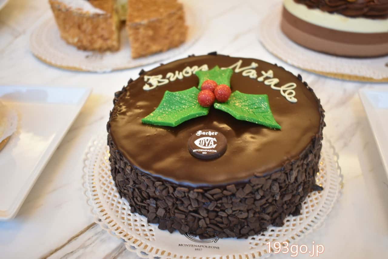 全体が濃厚なチョコレートでコーティングされ、柊の緑と赤がポイントの