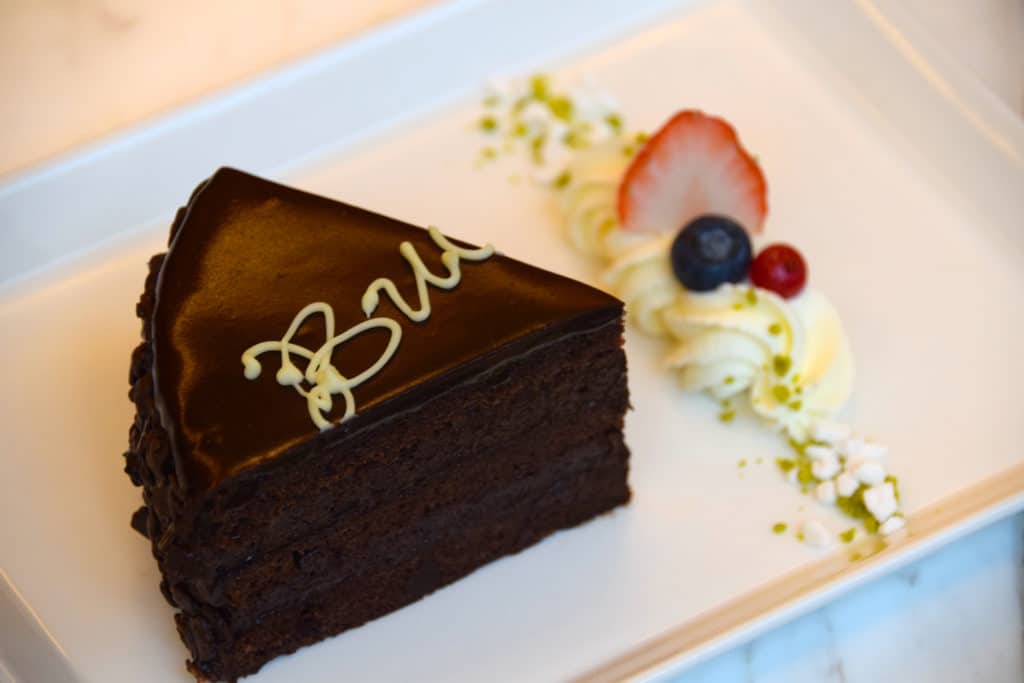 ダークチョコレート、ミルクチョコレート、ホワイトチョコレートの3種類のムースが3層になったチョコレート好きには堪らないケーキ。