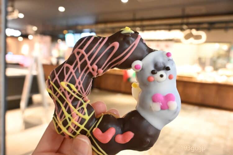 リングdeポンがチョコレートコーティングされ、ハートを抱えたクマちゃん付き♪