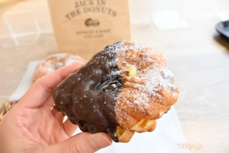 生地はシュ~、パリっとしたチョコがけの部分がある軽やかでしっとり、ウェーブの食感が良い。