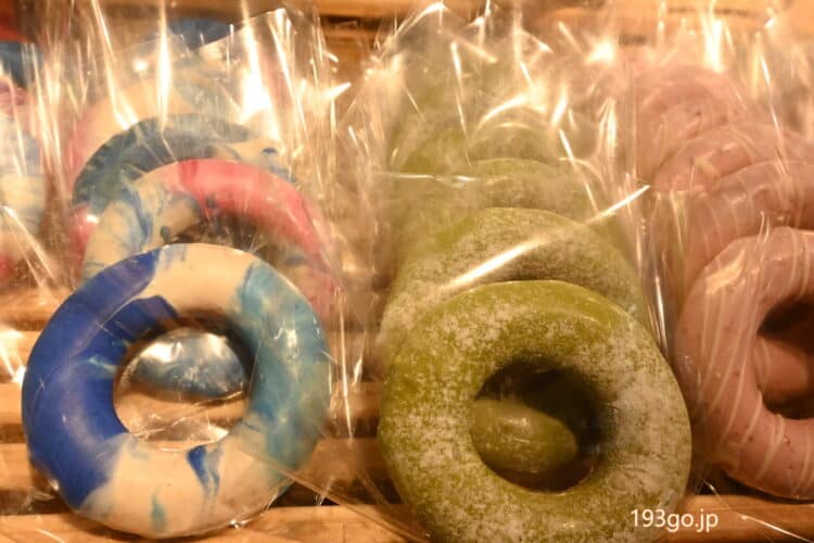 浮き輪の様なカラフルなギャラクシードーナツ、クマちゃんが付いたもの、シュガードーナツ、