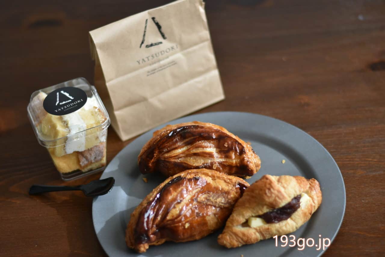 ミニクロワッサンに餡とバターがサンドされたあんこバタークロワッサンは食べやすいサイズ感でこちらも生地が美味しい。