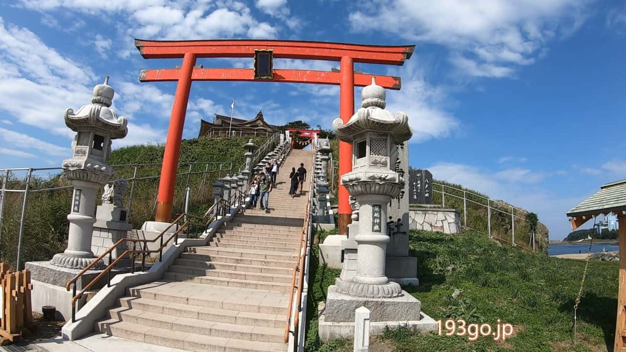 蕪島海浜公園の傍に、島の上に浮かぶ神社。