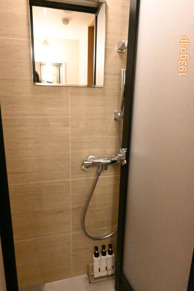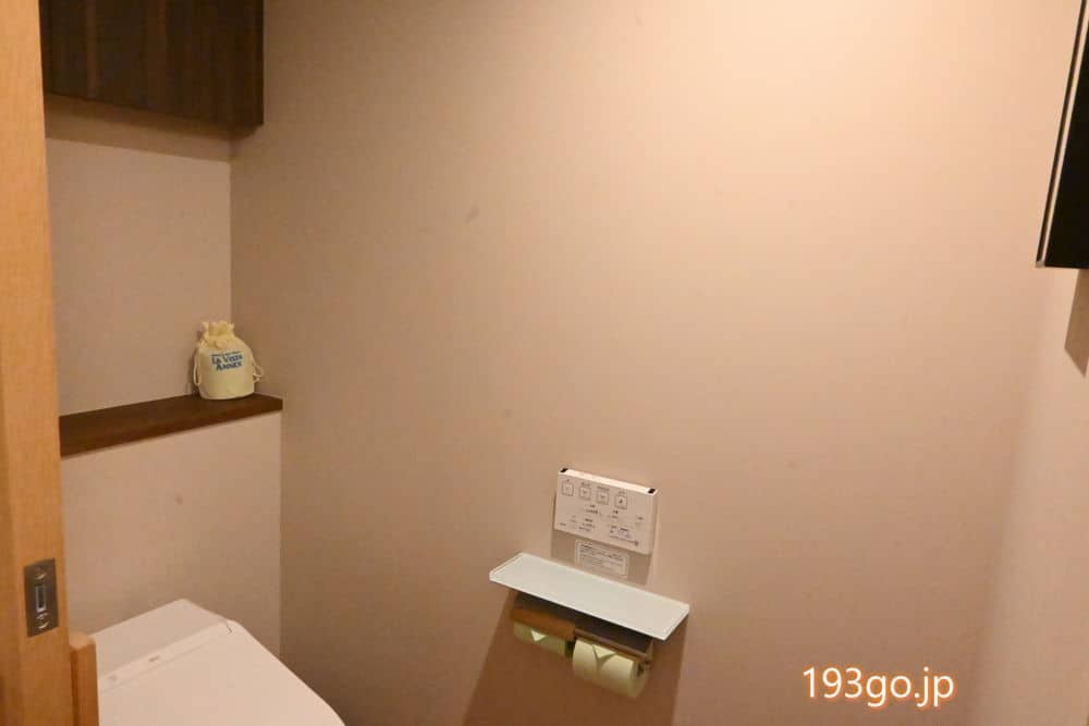 ベッドルームと、扉で仕切られ、入口側にシャワーブースや独立洗面台と、ウォシュレット式の独立トイレが。