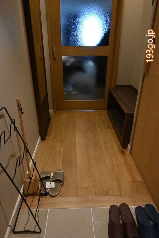 入口が広々していて、収納スペースもたっぷり。スリッパは室内用と館内用が用意されてる。
