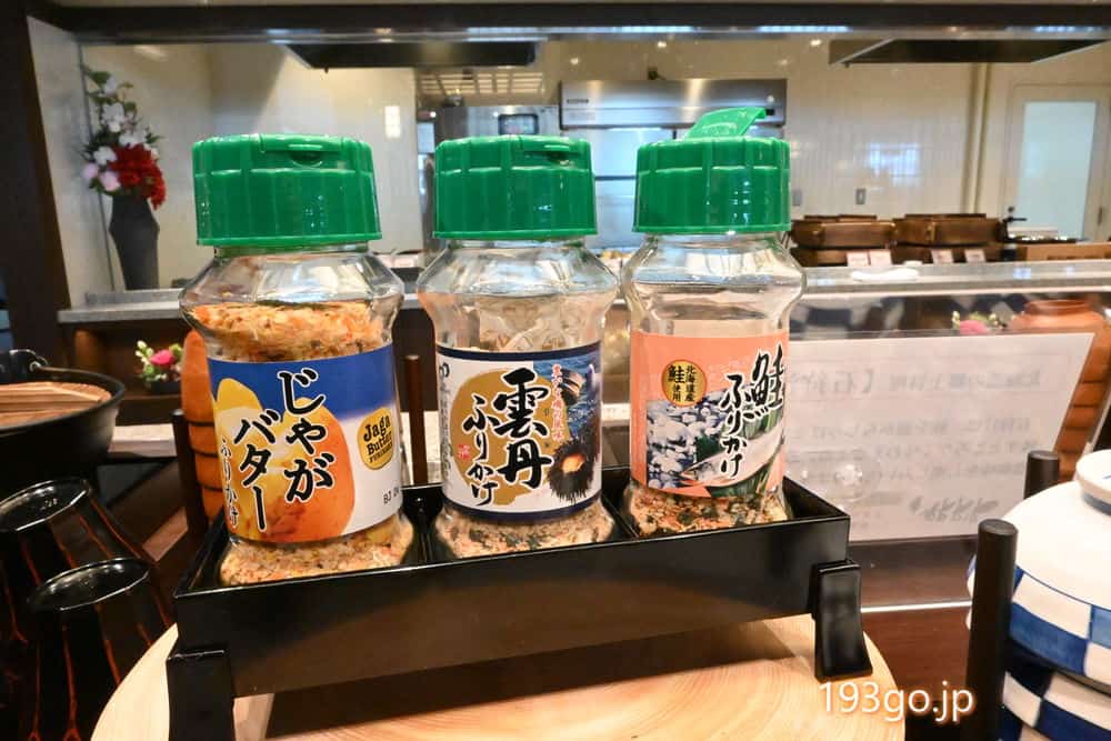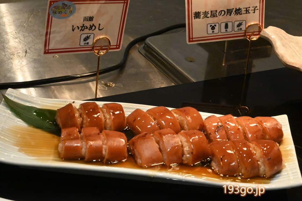 他には、函館地方の郷土料理のいかめしや、いももち、ザンギ、カスベ(エイ)の煮つけに、じゃがバター。