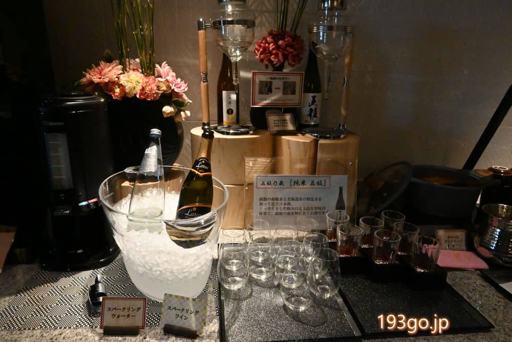 ドリンクは、朝からスパークリングワインや、函館市の五稜乃蔵の純米酒などのアルコールも用意され、豪華。