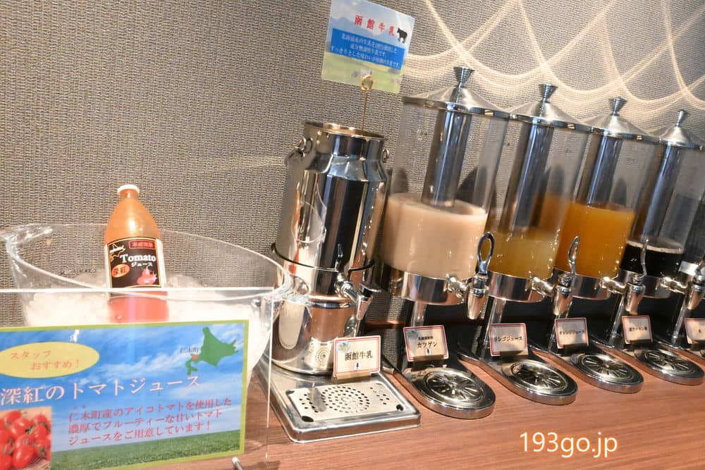 この後、運転を控えていたため、お酒は堪能できなかったけど、函館牛乳や、深紅(シンク)トマトジュースをいただいた。