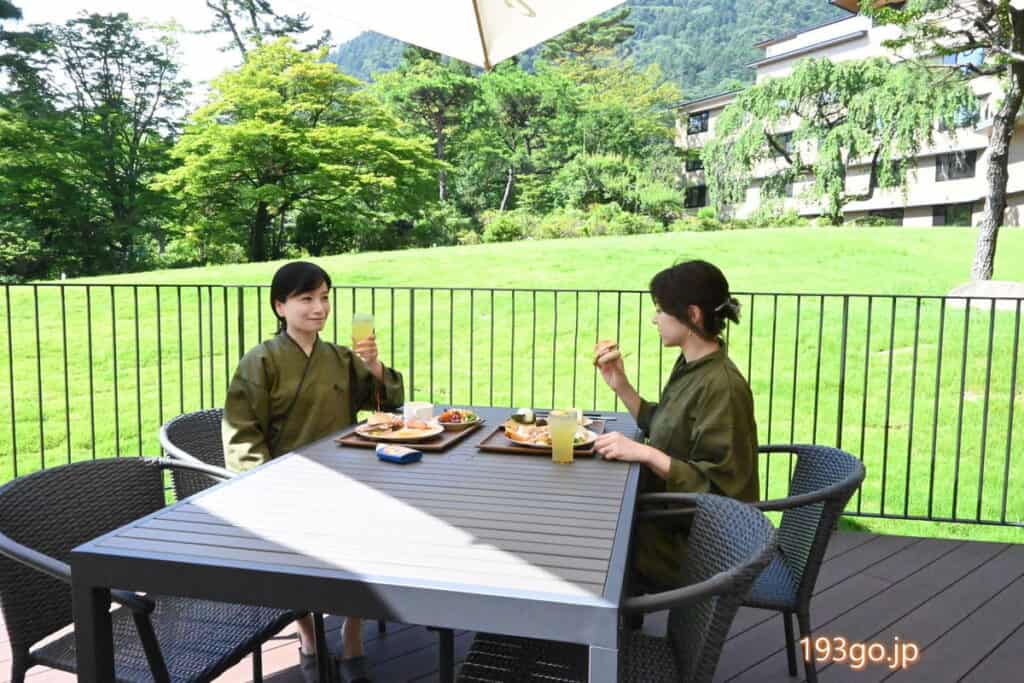 テラス席をリクエストし自然の中で朝食を。