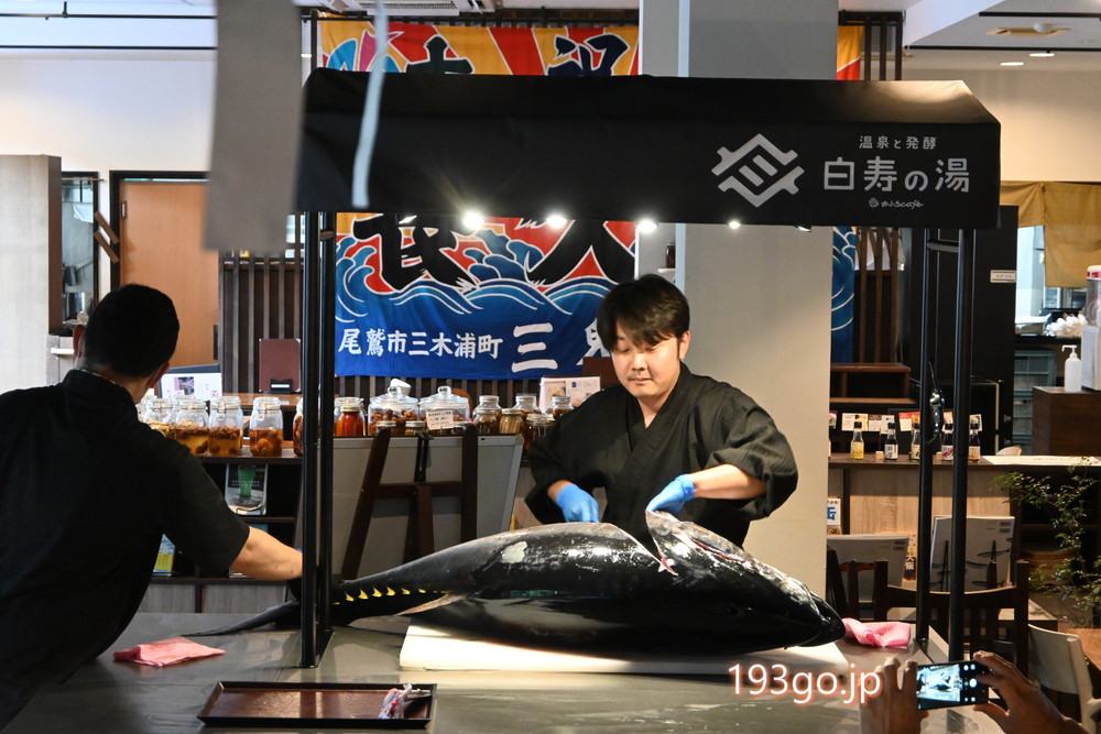 リニューアルオープンを記念しマグロの解体ショーも繰り広げられた。
