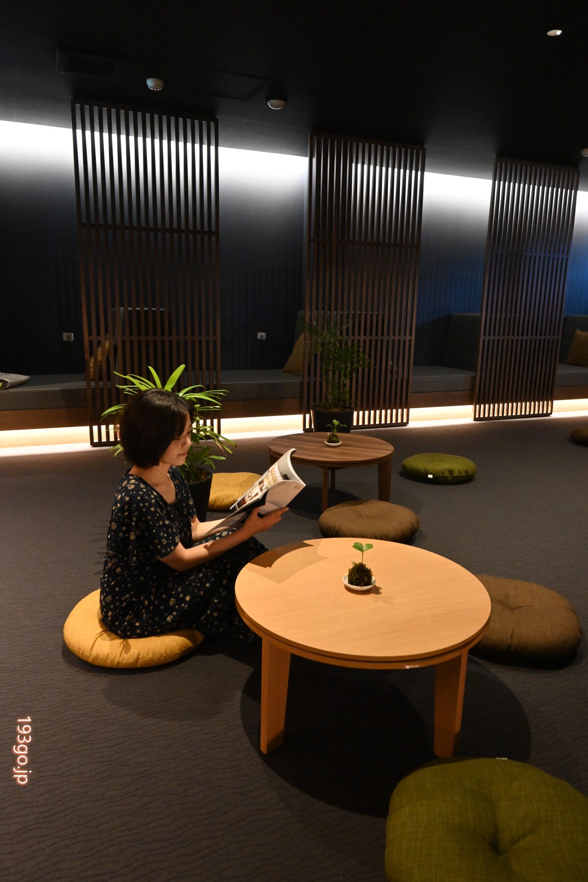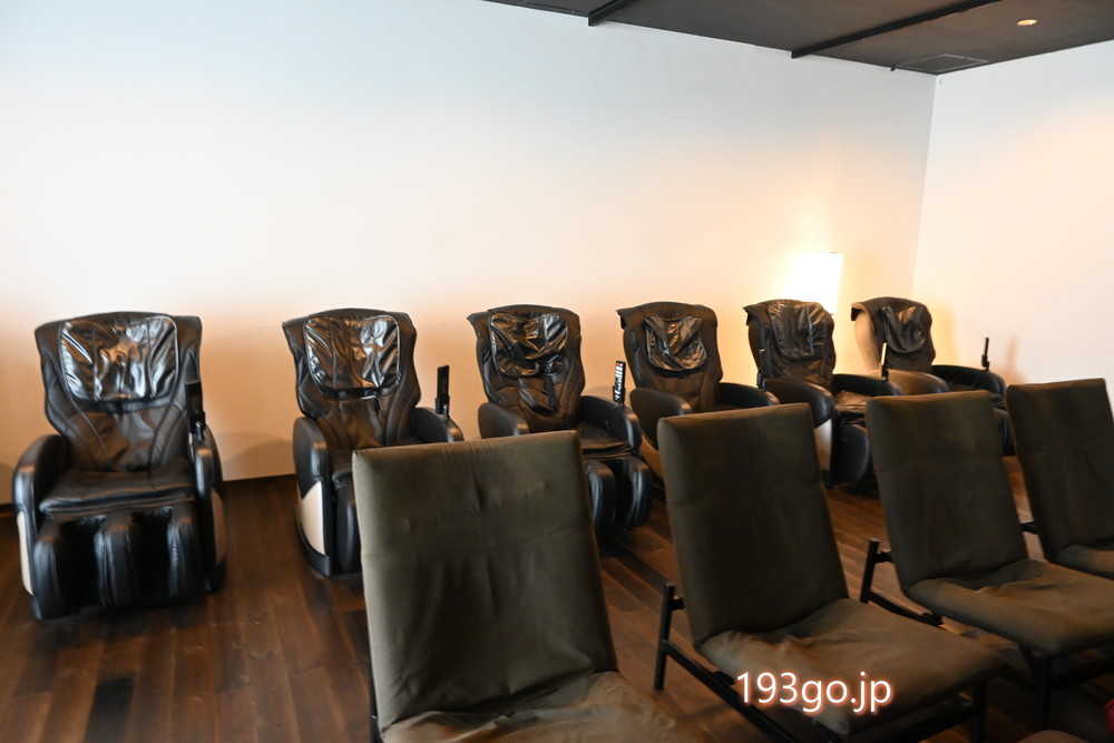 新しく登場した「湯あがりラウンジ」は照明のトーンを落とした和モダンな空間。