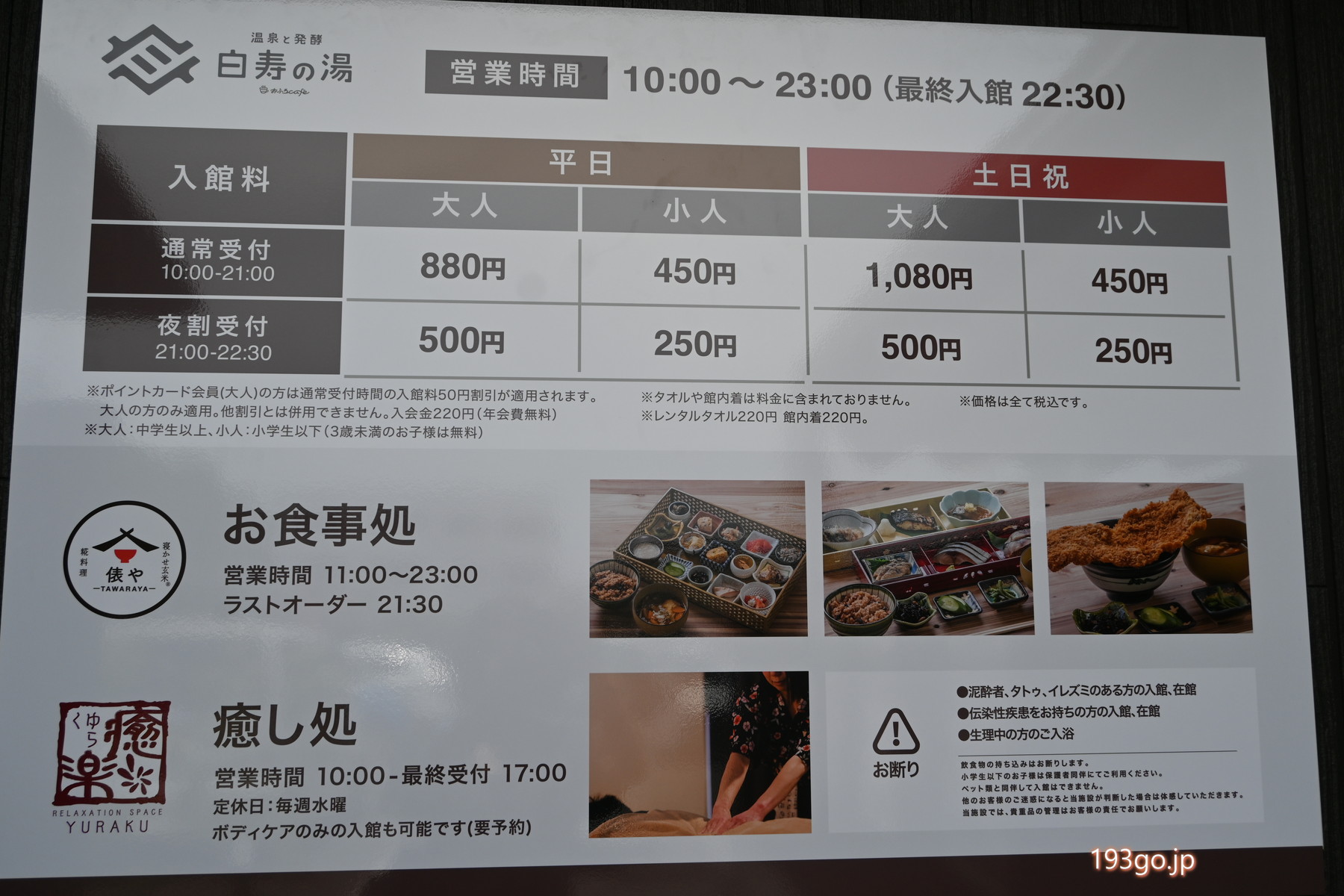 営業時間:10時~23時(最終入館 22時30分)