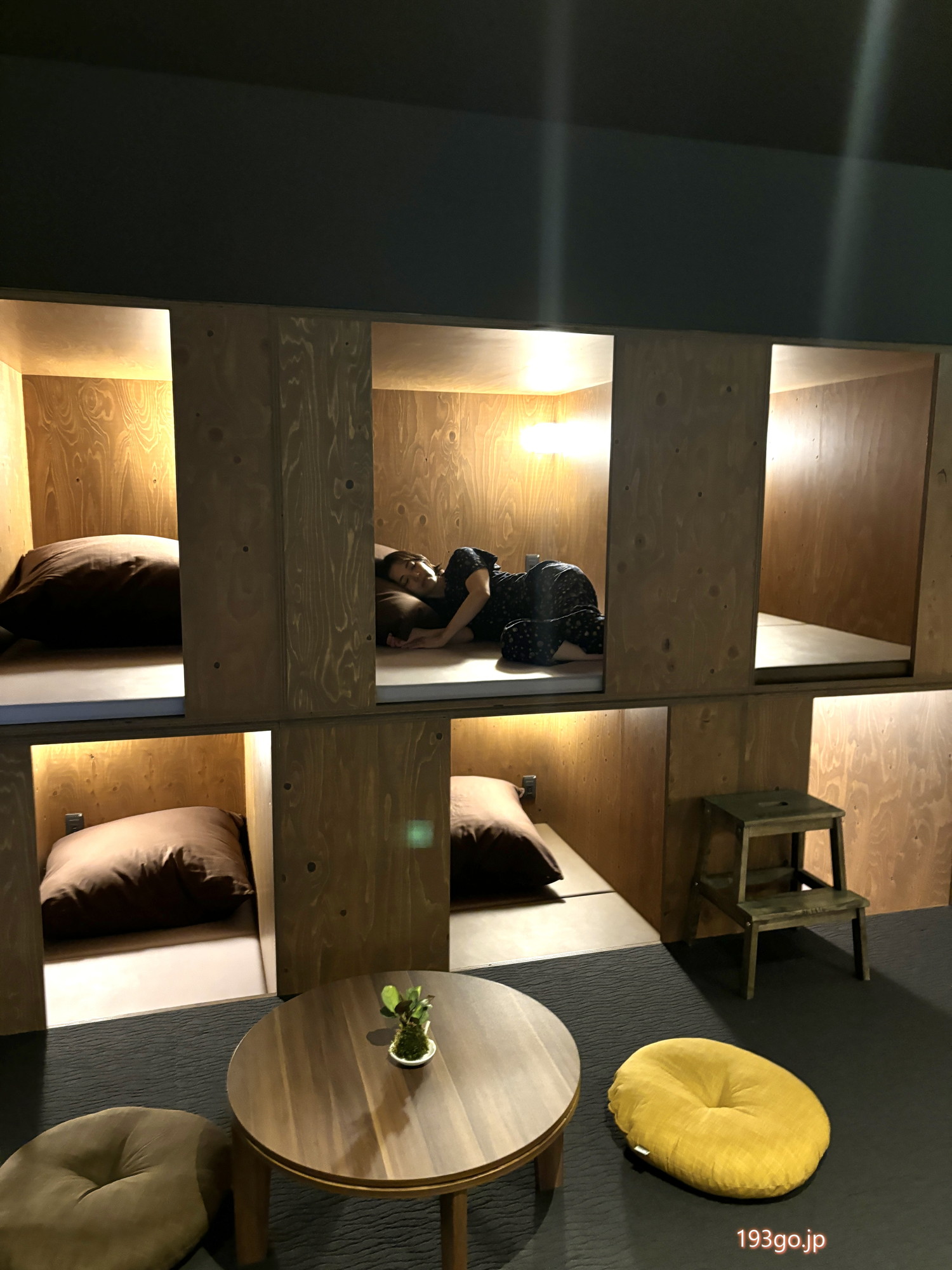 カプセルホテルのように箱の中に入って過ごせる空間も。