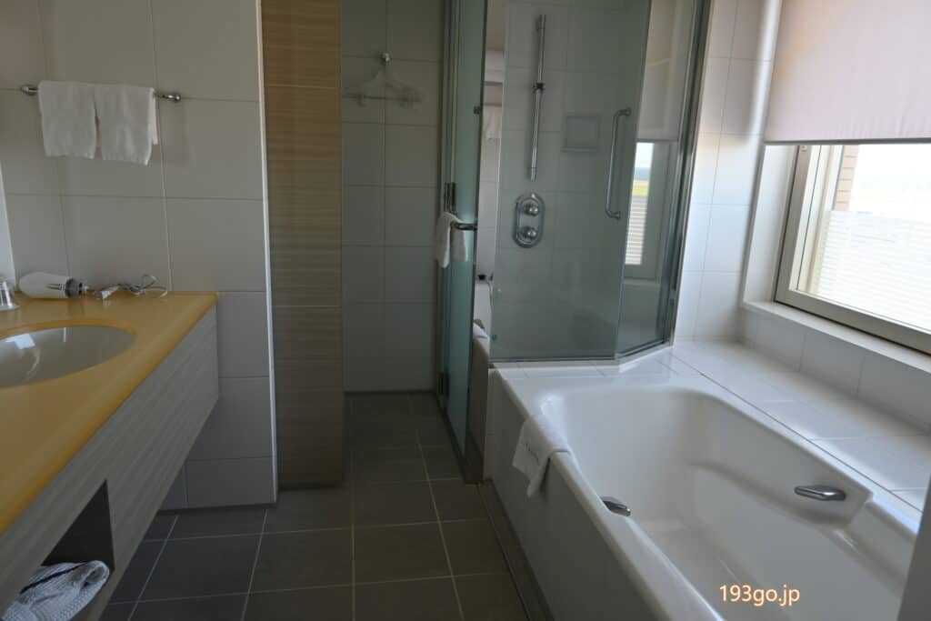 お部屋からもバスルームからも間近に滑走路を眺めることができ、飛行機を十分に楽しめる。
