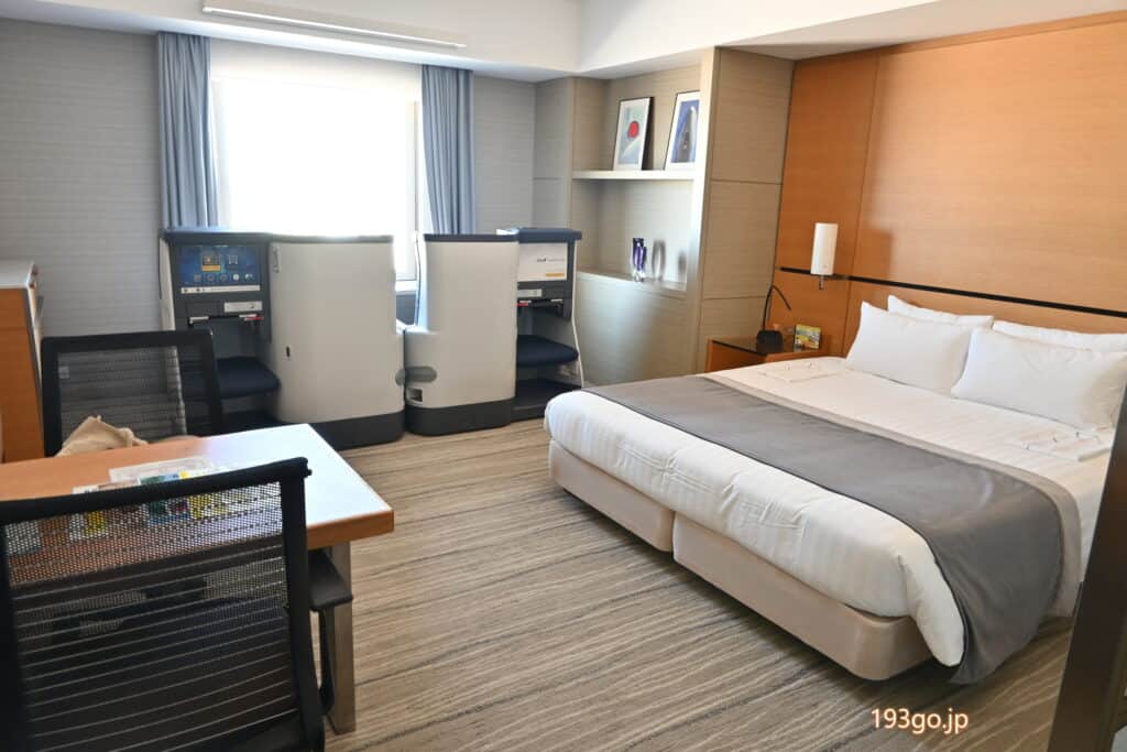 部屋の窓から飛び立つ飛行機や東京湾を眺めながら、空港ならではの雰囲気に浸れる。