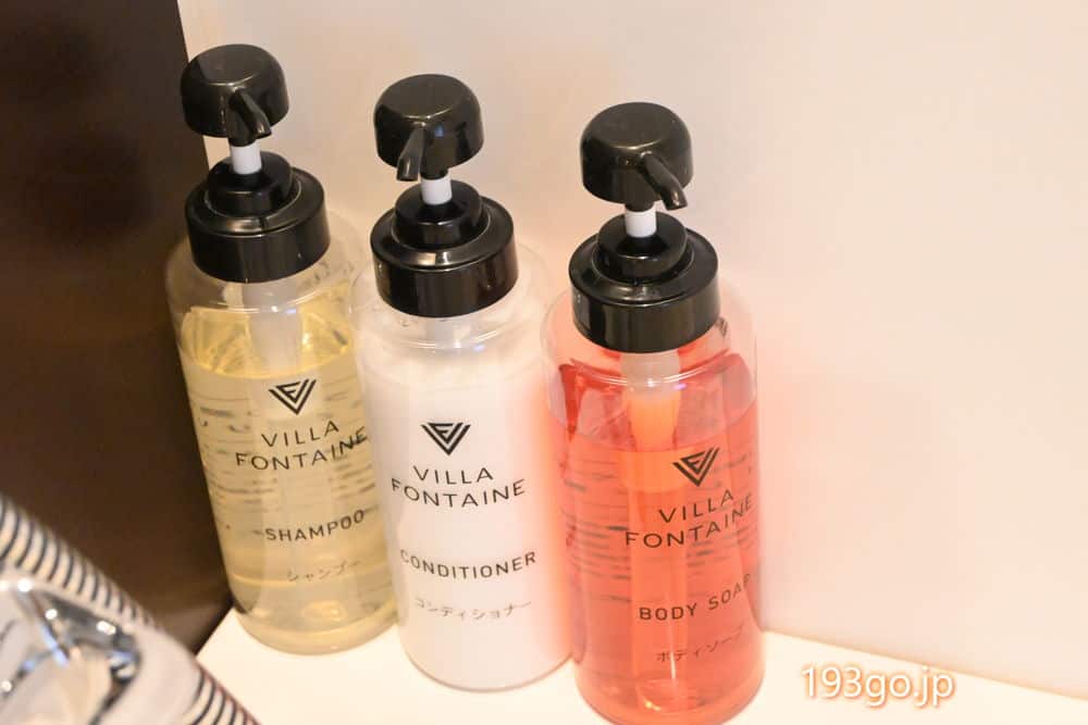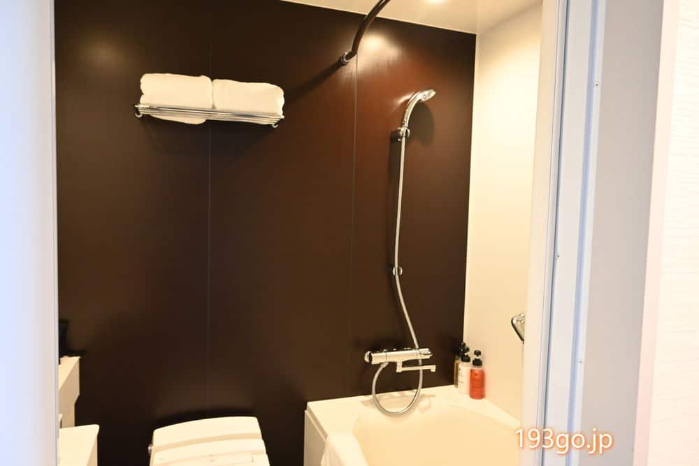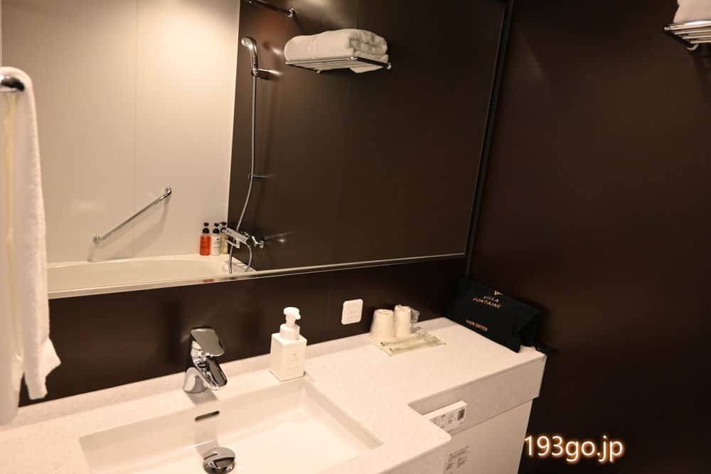 ホテルオリジナルのバスアイテムやタオルも備わるが、大浴場を利用したため部屋のお風呂は入らなかった。