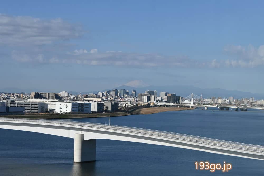 窓からは多摩川にかかる多摩川スカイブリッジが見える。翌朝は晴天で富士山も望めた。