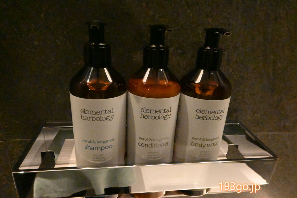 バスタブ付きバスルーム。バスアイテムが揃う。