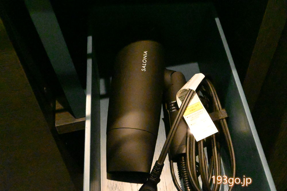 タオルとドライヤー、ハンドソープ、ボディローション。