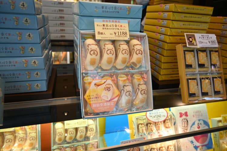 ショップ内には、羽田空港限定の東京ばな奈や東京ばな奈カステラなども販売していた。お土産を購入するのにも便利。