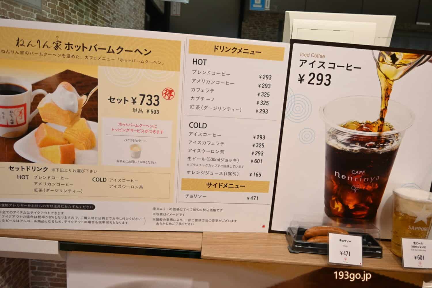 限定メニューのホットバームクーヘンとドリンクセット:733円を注文。単品は503円。