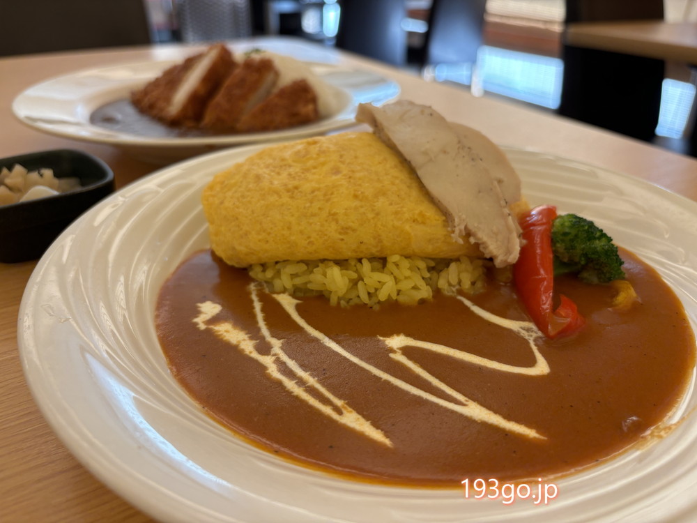 フワトロのオムレツが乗ったコクのあるバターチキンカレー。洋食らしい上品な盛り付け。