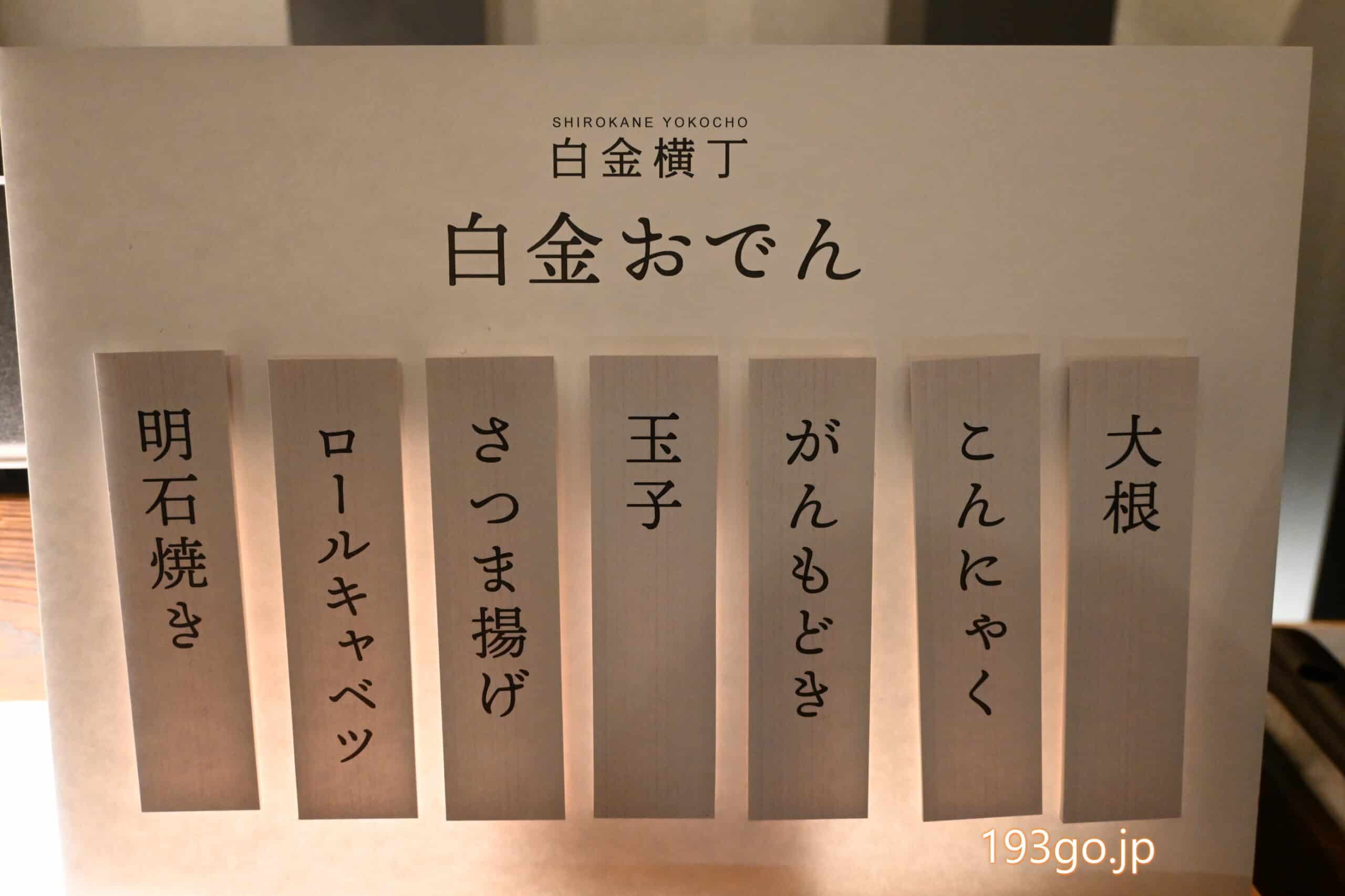 「白金おでん」は、玉子、こんにゃく、ロールキャベツに、明石焼き!
